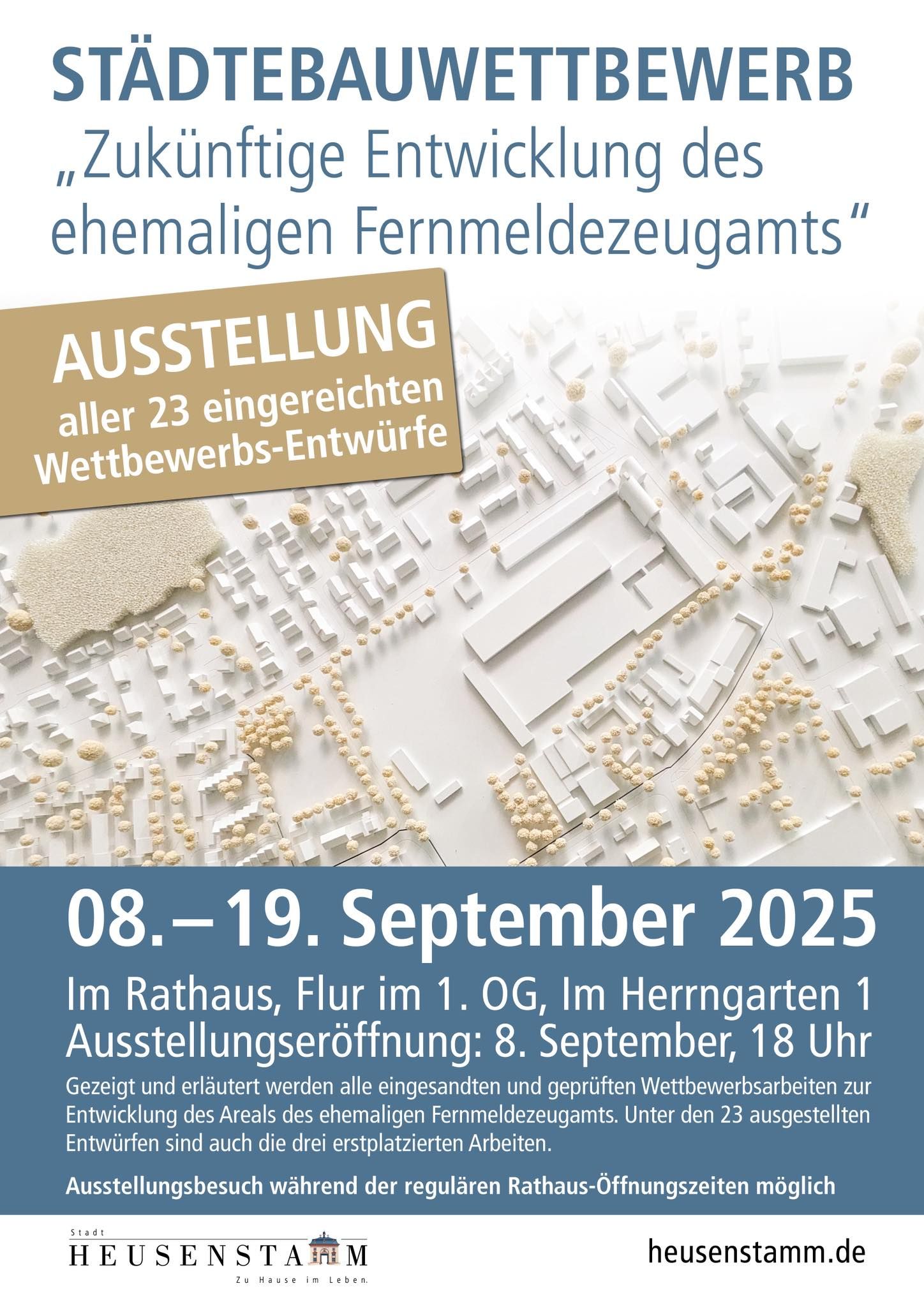 Vom 8. bis 19. September haben alle Interessierten die Möglichkeit, die Ergebnisse des städtebaulichen Wettbewerbs zum Areal des ehemaligen Fernmeldezeugamts zu sehen.