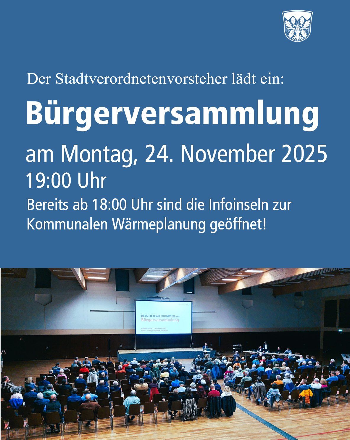 Stadtverordnetenvorsteher Peter Jakoby lädt alle Bürgerinnen und Bürger herzlich zur Bürgerversammlung ein.