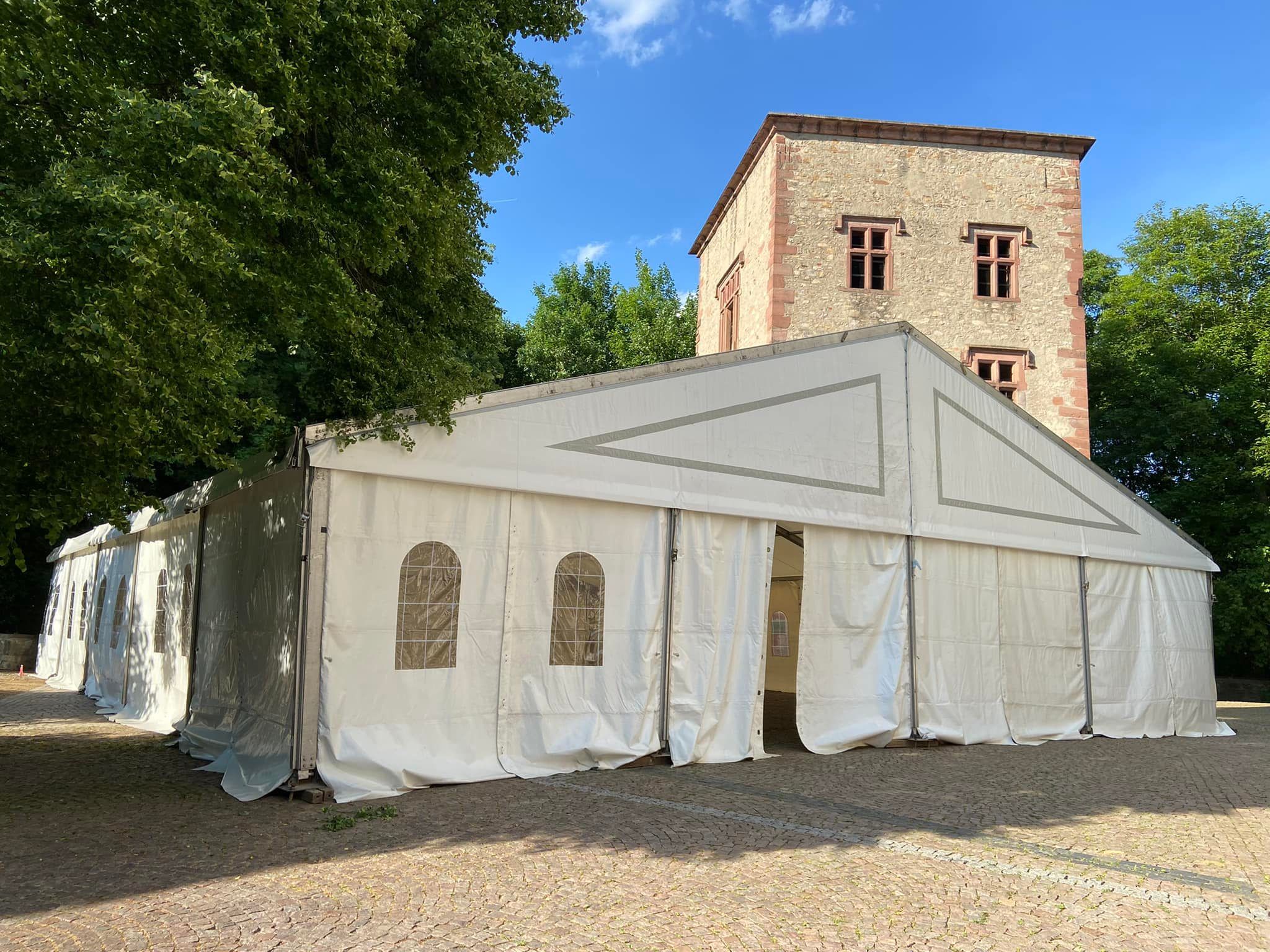 Heusenstammer Sommer - Zelt am Bannturm steht.