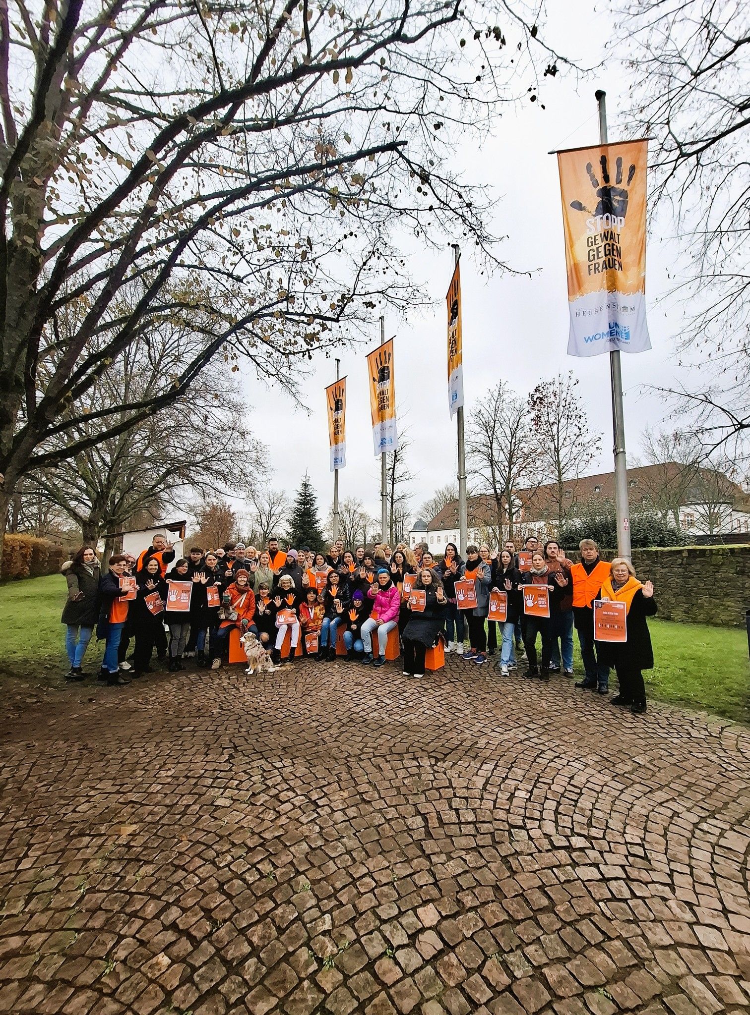 Am Schloss-Rathaus wehen heute die orangefarbenen Fahnen mit der Botschaft „Stopp Gewalt gegen Frauen“. Initiiert von unseren städtischen Frauen- und Gleichstellungsbeauftragten Gundi Wilz und Derya Arslantürk sowie dem Frauenbüro-Team.